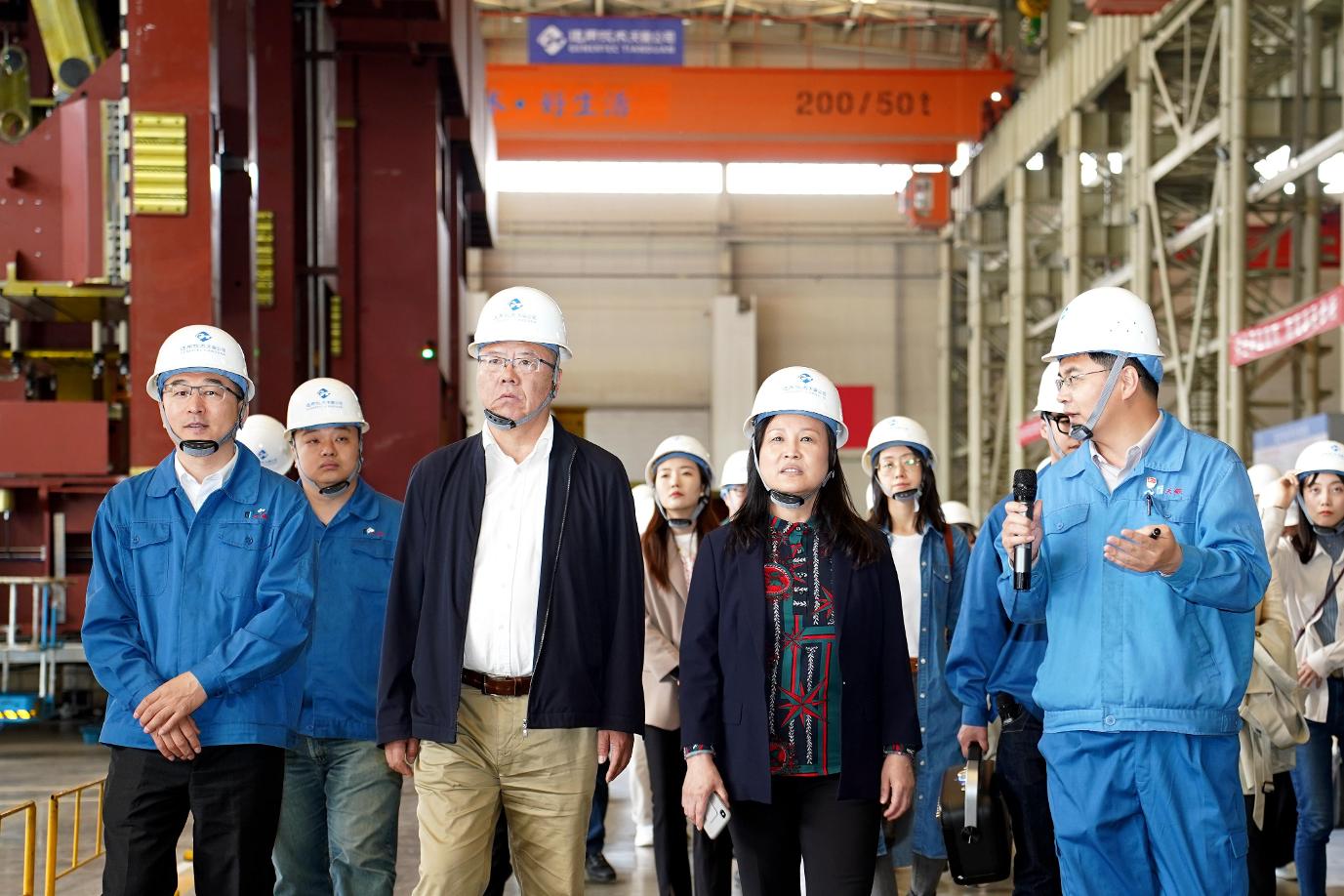 劉春代表調(diào)研組講話,感謝天鍛公司為機(jī)電商會(huì)青年同志提供了深入制造業(yè)企業(yè)一線的調(diào)研學(xué)習(xí)機(jī)會(huì),讓大家能夠現(xiàn)場(chǎng)參觀“大國(guó)重器”的制造過(guò)程、了解機(jī)床裝備制造業(yè)的發(fā)展情況。她表示,機(jī)電商會(huì)作為我國(guó)機(jī)電企業(yè)對(duì)外交流合作的重要平臺(tái),一定會(huì)積極發(fā)揮宣傳、促進(jìn)、推動(dòng)作用,助力天鍛公司進(jìn)一步加大國(guó)際市場(chǎng)開(kāi)拓,共同為振興我國(guó)機(jī)床產(chǎn)業(yè)做出更大貢獻(xiàn)。