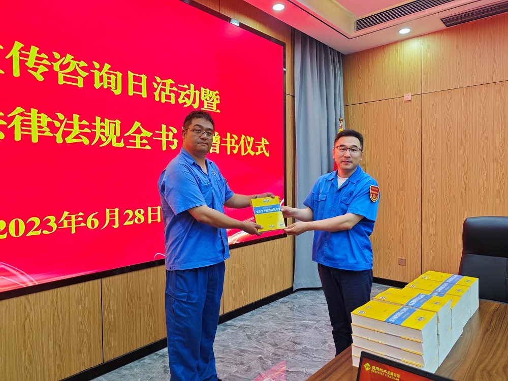 6月28日,公司舉辦安全生產(chǎn)月“安全宣傳咨詢(xún)?nèi)栈顒?dòng)暨《安全生產(chǎn)法律法規(guī)全書(shū)》贈(zèng)書(shū)儀式”,收集并回答干部員工關(guān)于安全生產(chǎn)的問(wèn)題,為各部門(mén)贈(zèng)送安全法規(guī)書(shū)籍。