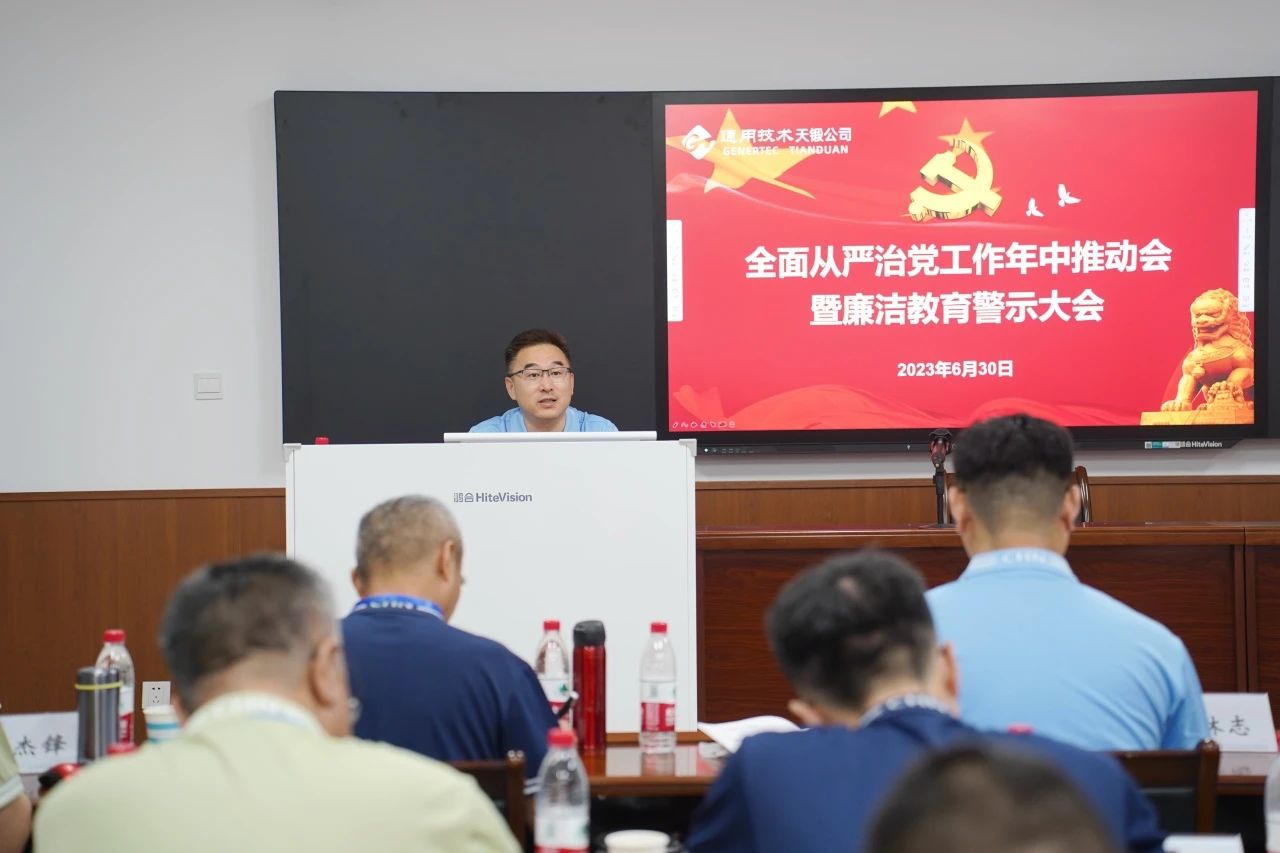 在專題黨課之后,紀委書記蘇杰鋒主持召開了公司全面從嚴治黨工作年中推動會暨廉潔教育警示大會。會上,黨委副書記盧東領(lǐng)學(xué)了從嚴治黨有關(guān)文件材料,大家集體觀看了警示教育專題片。劉國福代表公司黨委與領(lǐng)導(dǎo)班子成員、各單位負責(zé)人、基層黨組織負責(zé)人進行了集體談話,強調(diào)公司要堅定不移推進全面從嚴治黨,為創(chuàng)建世界一流企業(yè)營造風(fēng)清氣正的干事創(chuàng)業(yè)環(huán)境,要求各單位、各基層黨組織負責(zé)人發(fā)揮示范引領(lǐng)作用,做好本單位管黨治黨工作,做到清靜、干凈,知敬畏、有境界,不去想、不去做得不償失、悔之晚矣的事。