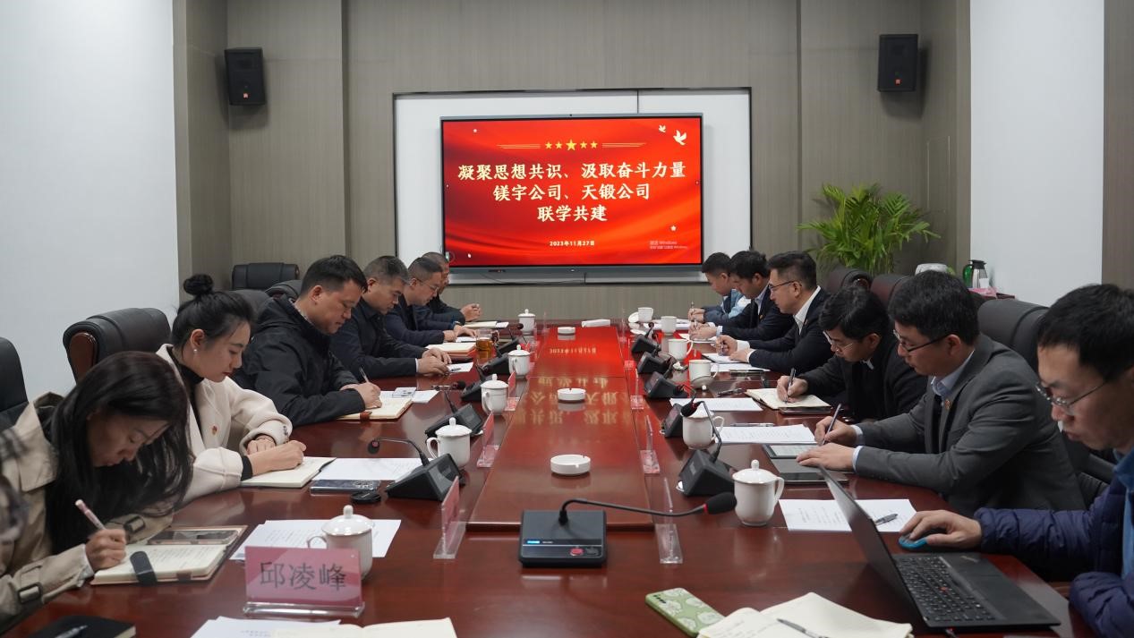 公司領(lǐng)導(dǎo)一行來(lái)到湖南鎂宇科技公司溝通交流有關(guān)項(xiàng)目進(jìn)展情況,并與鎂宇公司聯(lián)合開(kāi)展了“凝聚思想共識(shí)、汲取奮斗力量”主題教育黨課,深入理解習(xí)近平新時(shí)代中國(guó)特色社會(huì)主義思想的世界觀(guān)和方法論,積極研討如何貫徹落實(shí)總書(shū)記對(duì)新時(shí)代新征程國(guó)資央企工作的最新要求。