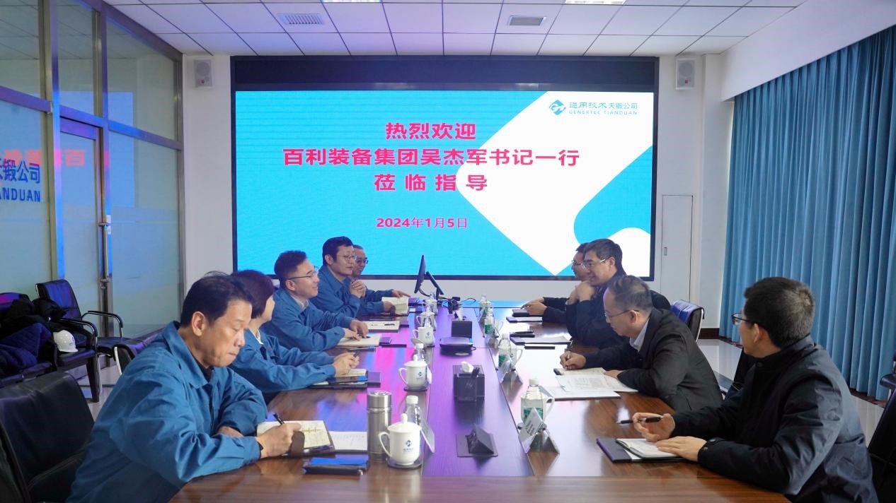 1月5日下午,百利裝備集團(tuán)董事長(zhǎng)、黨委書(shū)記吳杰軍一行到天鍛公司調(diào)研,公司領(lǐng)導(dǎo)劉國(guó)福、劉林志、盧東、張敬波、劉玉民及有關(guān)部門(mén)人員陪同。